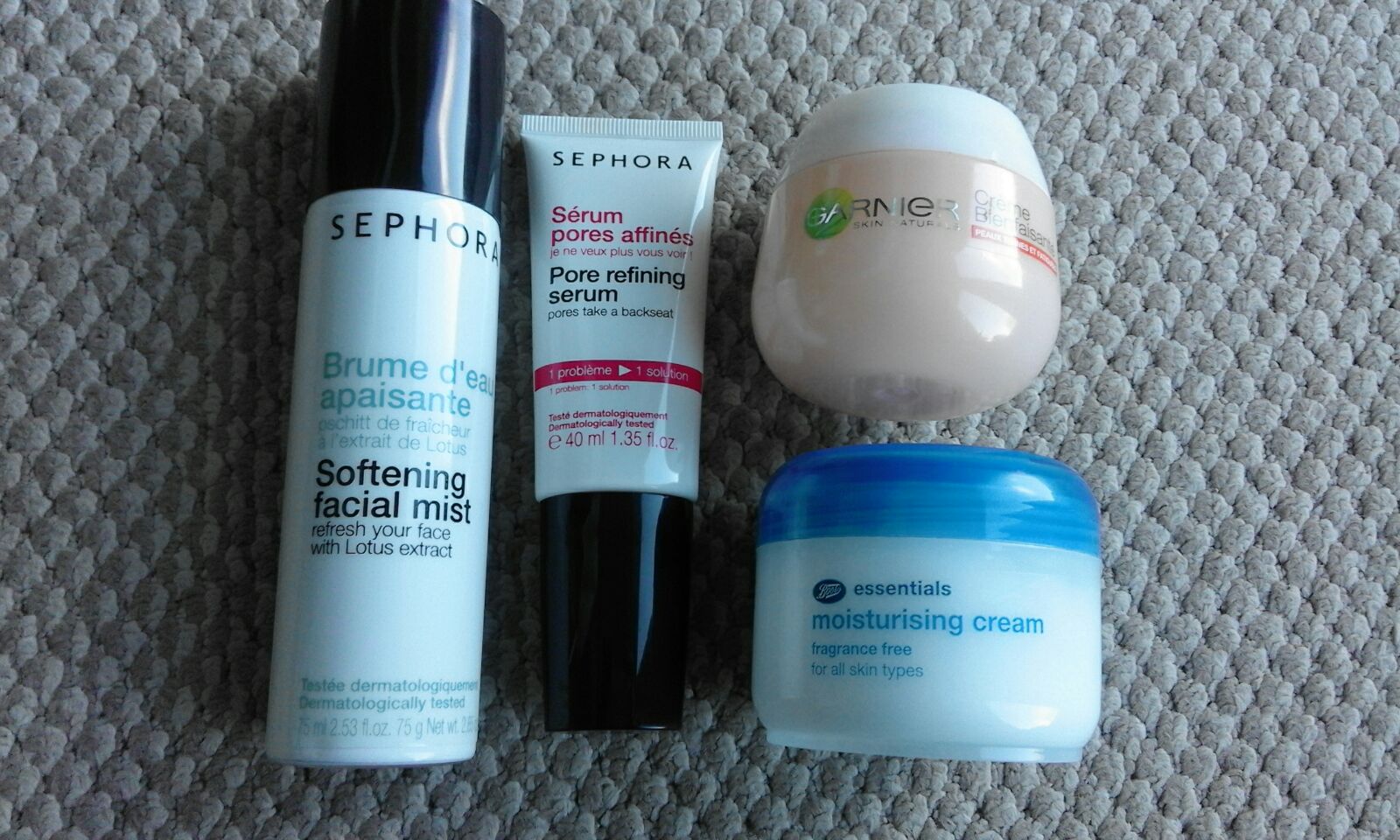 La Miracle Cream de GARNIER, HD Foundation y HD Powder de MAKEUP FOREVER y un corrector